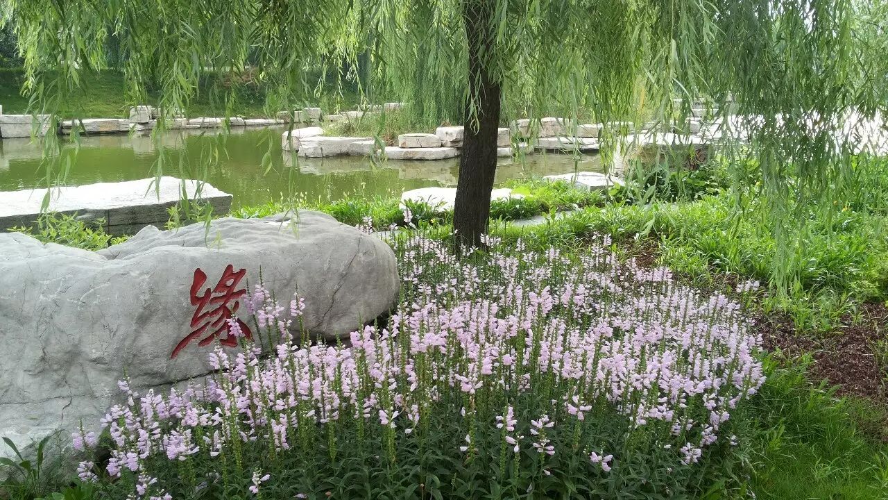 天地缘孝道文化产业园内108个不同字体的“缘”字,雕刻在路边形态各异的石头上,分布在每个角落,共同衬托着公司的缘文化。